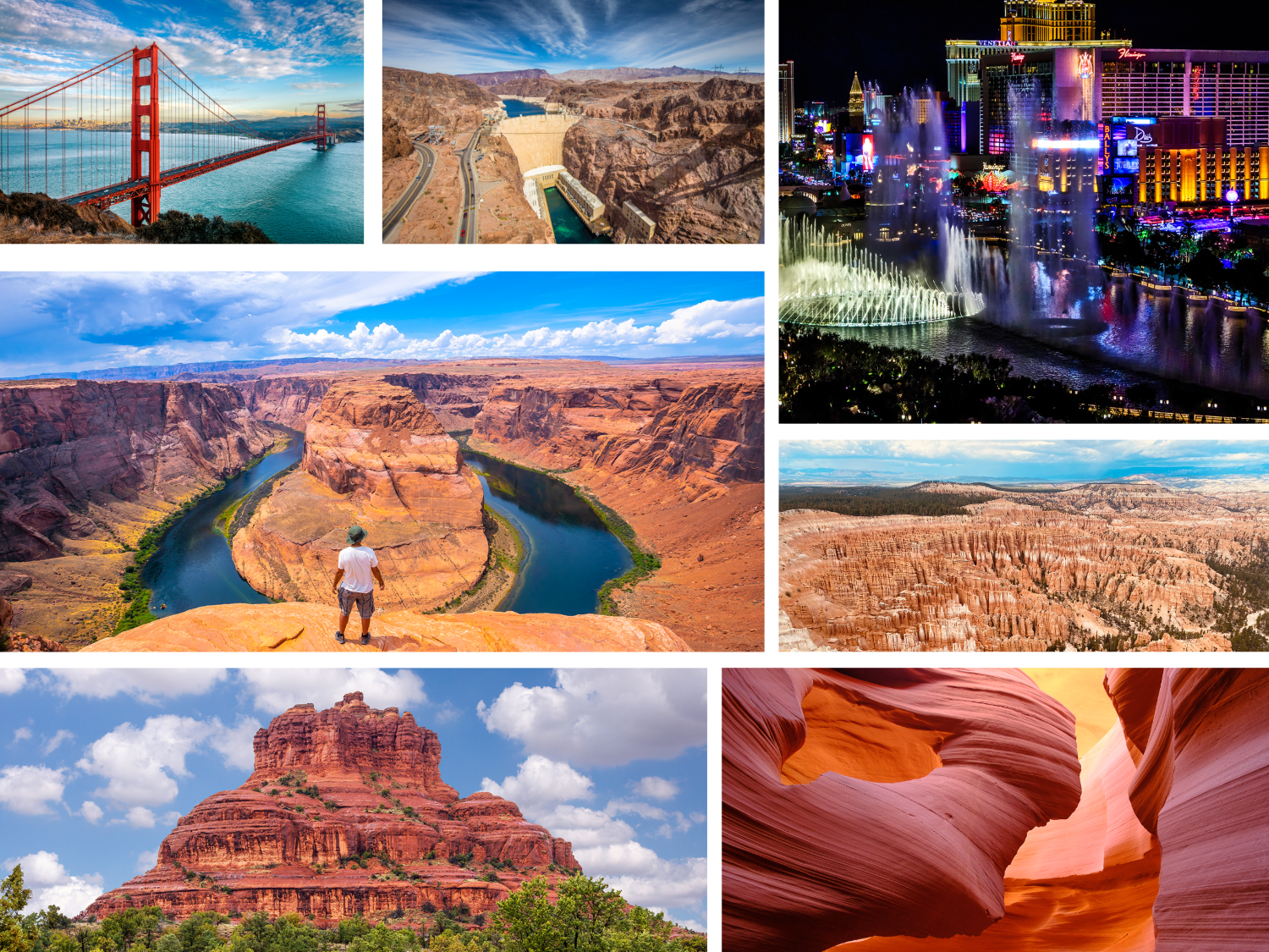 | 料金に含まれるサービス | ホテル宿泊費6泊(税金とコンチネンタルブレックファーストを含む) /エアコン付きのバスまたはバン、特別ツアーガイド /サンフランシスコのBaycruiseとYosemite Parkへの入場 /ラスベガスとフーバーダム ・アンテロープキャニオン - バレーオブファイヤー州立公園入場料ツアー /モニュメントバレージープツアー(ランチを含む) | ||||||||